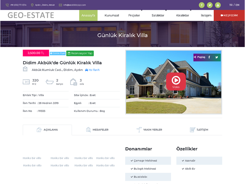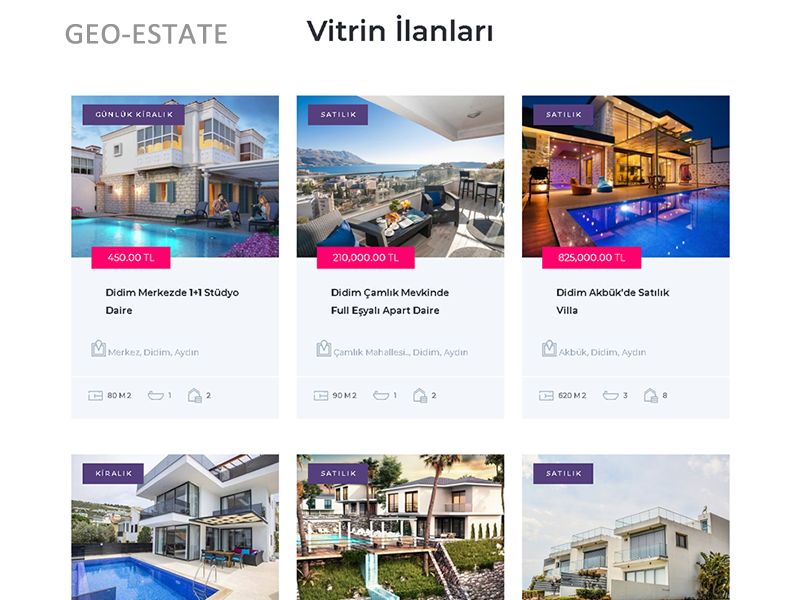 Geo-Estate coğrafi konum tabanlı algoritmalarla çalışan, online rezervasyon sistemini de içinde barındıran, mükemmel bir gayrimenkul tanıtım ve pazarlama sistemidir.